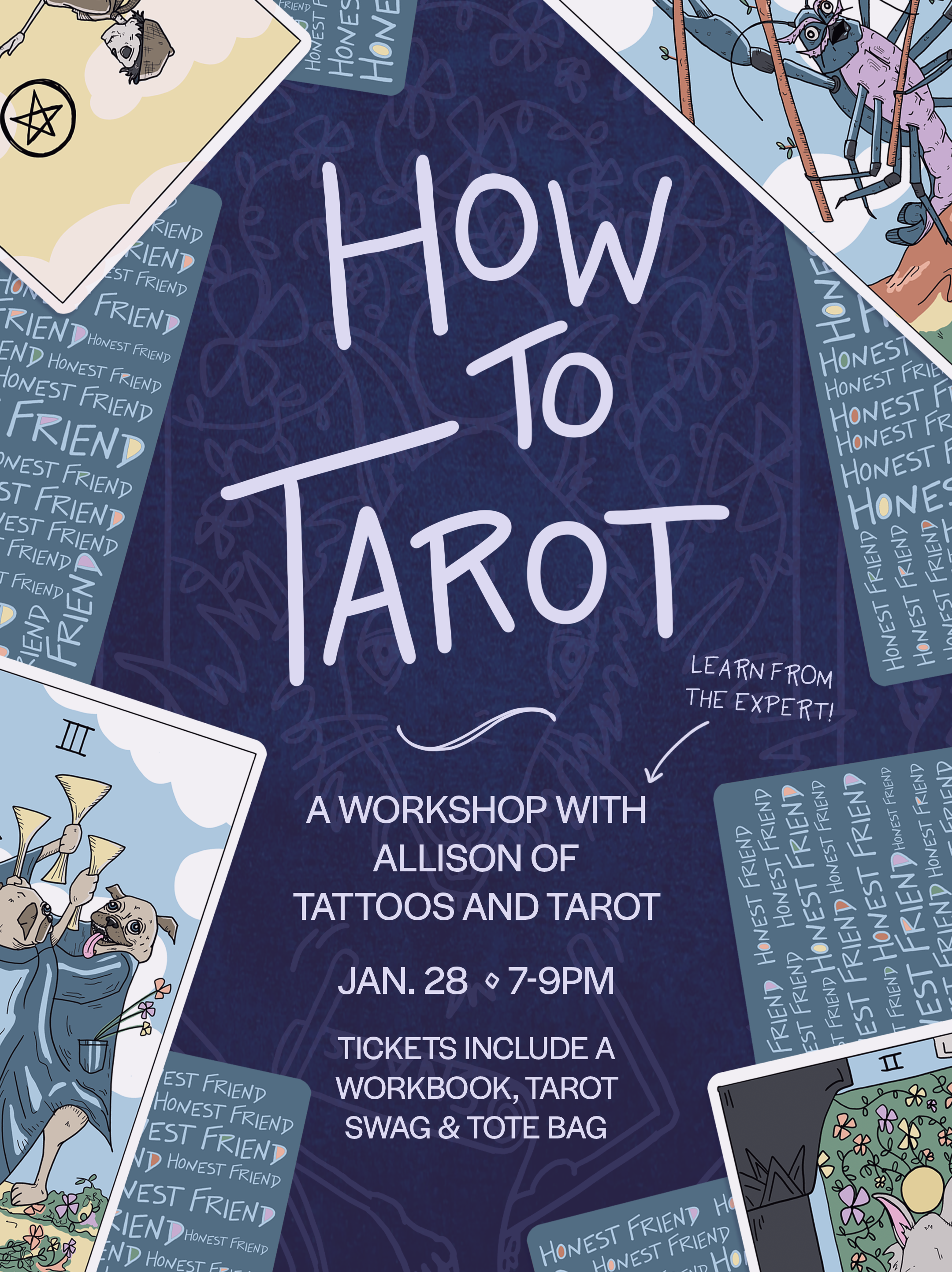 Learn how to read tarot for yourself or others in this cozy workshop at Honest Friend Brewing. Materials and swag bag included!